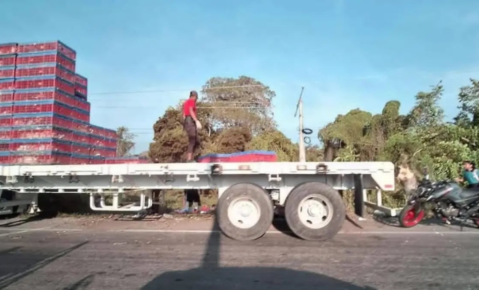 Según versiones extraoficiales, la pesada unidad había sufrido una falla mecánica, pero la gente aprovechó la oportunidad para el robo de la carga.