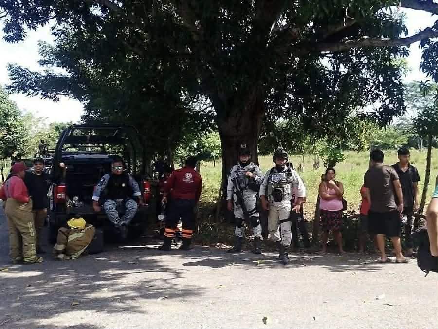 Junto a los hombres, dos reses murieron, igual, por el olor que despedía el hidrocarburo. Ante la situación, llegó personas de Petróleos Mexicanos (Pemex), pero aún no habían logrado extraer a las personas muertas.