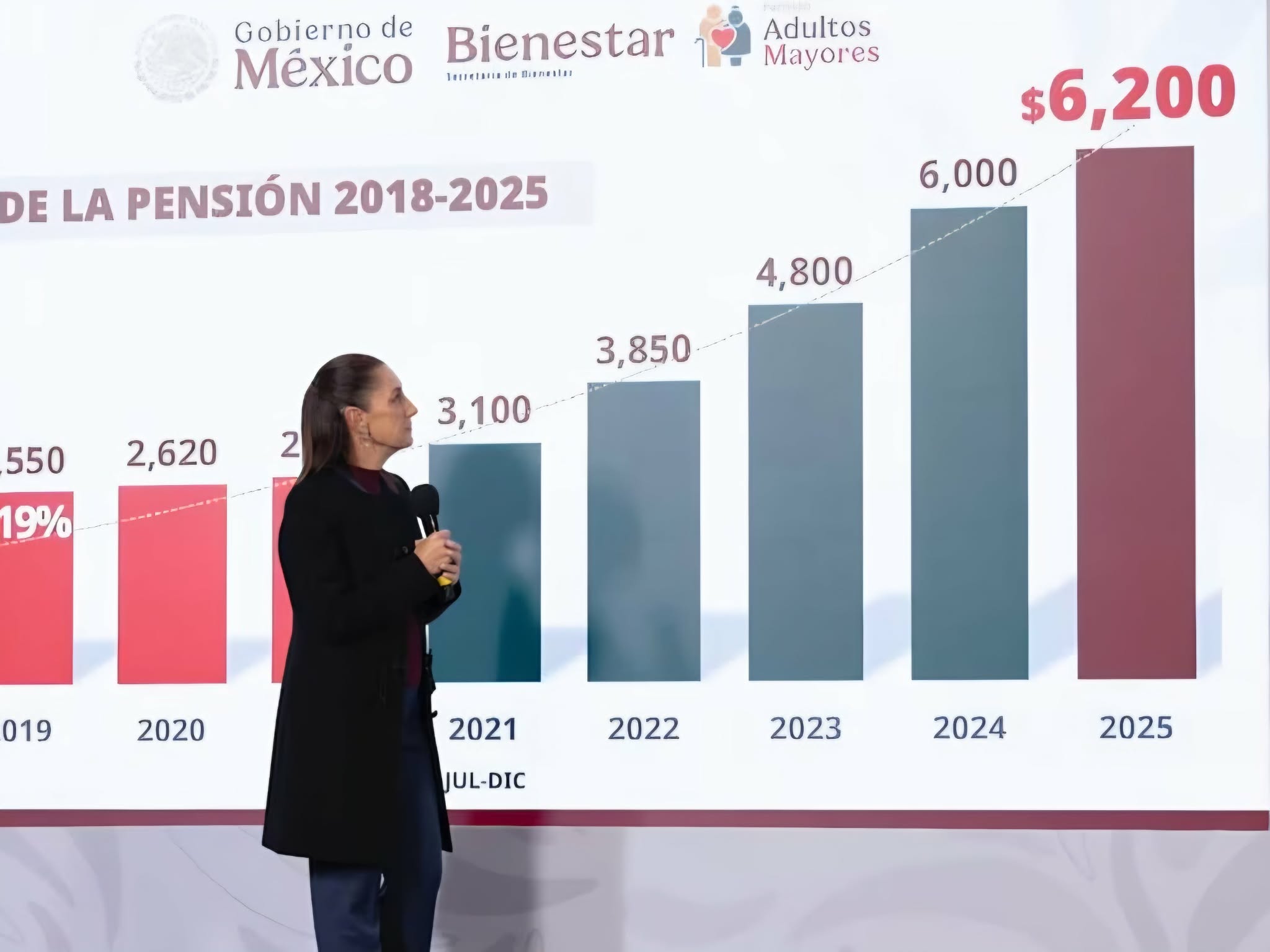 La presidenta mostró la evolución de la entrega de apoyos sociales en los últimos sexenios