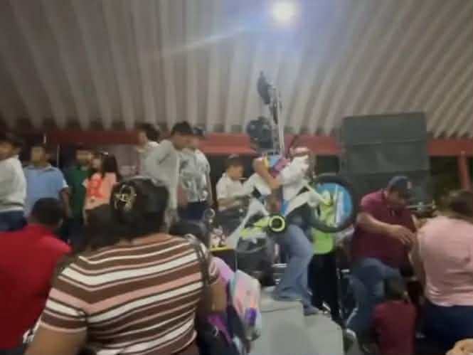 Incluso, en uno de los clips se observa cómo el maestro de ceremonias solicita a los adultos que mantengan el orden; sin embargo, estos continuaron subiendo al escenario y peleándose entre sí por los obsequios.